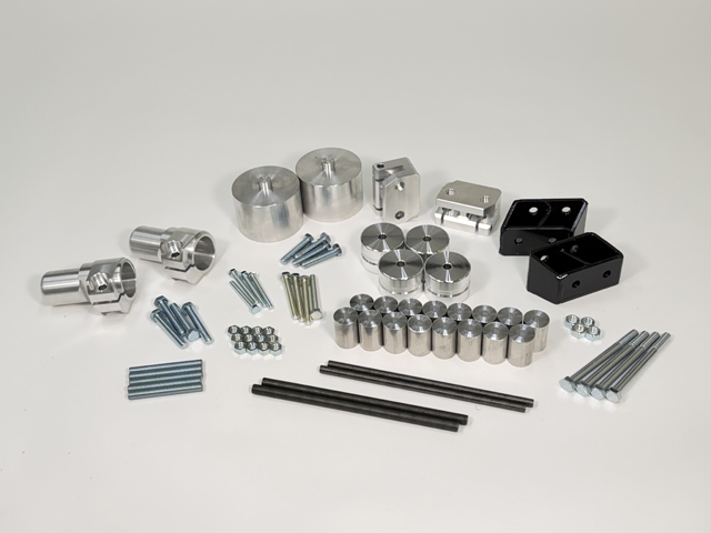フロントメンバーブロック、フロントショックエクステンション、スピンドルアッパーブロック、ミッションメンバーブロック、プロペラシャフトダウンブロック、リアメンバーブロック、リアショック延長ブラケット、リアコイルマウントスペーサー、ロングボルトその他