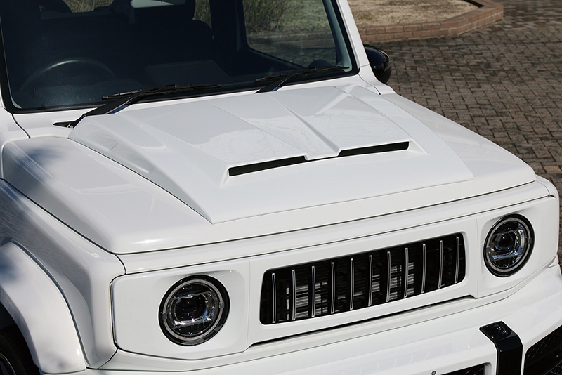 ボディキットラインナップ ・フロントバンパー ・リアバンパー ・ボンネットダクト ・フロントグリル ・フェンダー エグゾーストシステム ボディ下部から左右に取り廻されたステンレスマフラー 丁寧な曲げ処理が目を引きます ホイール 高強度・高精度を基本概念に開発された鍛造アルミニウムホイール 20インチ/9J/インセット0 造形美、機能美共に極限までこだわって製造 電動サイドステップ ドアの開閉に合わせて自動で格納・展開する優れもの 新型ジムニー用取り付けブラケット・モジュール付き ご購入・詳細価格はこちら